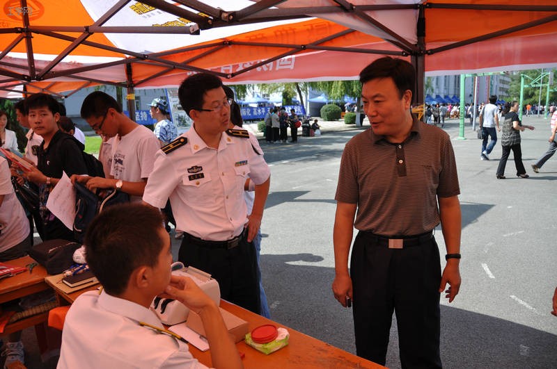 2010年8月14日至8月16日,国防教育学院新生报到工作全面开启。在二公寓门前的空地上,学生会工作人员进行了为期三天的迎新工作。在学院老师的指导下,学生工作人员密切配合,工作顺利进行。在这期间,校长刘志刚同志,校党委书记魏�同志,选培办主任鲁洪哲大校莅临现场视察并指导迎新工作。