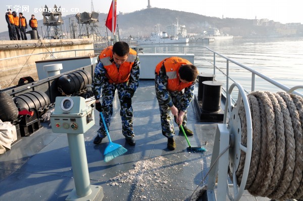 军舰进港,班长带队站坡