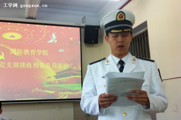 拟发展入党人员崔进宣读《入党志愿书》