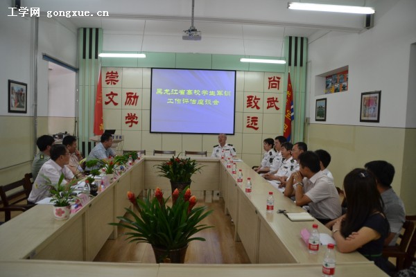 省评估工作领导小组组长、省军区副参谋长刘凤奇,副组长、省教育厅体卫艺处处长梁秀海、副调研员卢瑛,专家组组长、省军区学生军训办公室副主任刘长晖,专家组成员,哈尔滨商业大学武装部长陈德友、黑龙江八一农垦大学武装部长张伟东、哈尔滨师范大学军事教研室主任张占武,我校党委副书记、副校长魏�出席会议。校学生军训工作领导小组成员单位负责人和国防教育学院教师代表参加汇报会。
