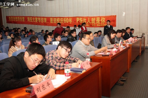 11月26日18时30分,以“迎接十八大顺利召开,为校庆60周年献礼”为主题的首届海报创意设计大赛决赛,在启航活动中心学术报告厅举行。本次比赛由校团委主办、国防教育学院承办。出席决赛现场的评委有:国防教育学院党委副书记、副院长王晓亮,大学生文化素质基地王婧、张文博老师,学生工作处金棱老师,国防教育学院学生工作办公室主任李思滨,国防教育学院团委书记刘东平。