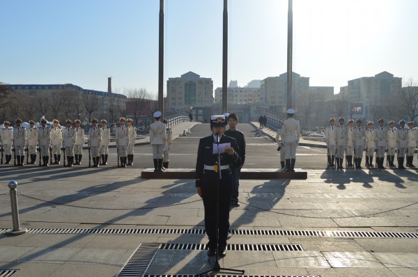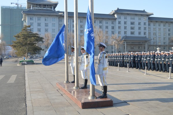 4月1日清晨,值海军节即将来临之际,国防学院全体国防生与自动化学院2012级学生共同举行升旗仪式。
