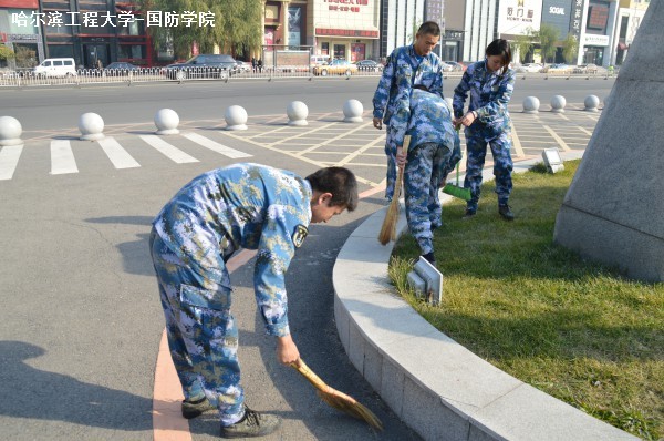 为美化校园环境,践行“三走精神”。10月17日中午,国防教育学院组织海魂志愿者服务队前往我校工学桥对我校校牌理石进行清理。 中午12时40分,由海魂志愿者组成的清扫服务队在13公寓前整装待发,他们手持清扫工具来到了我校工学桥处的校牌前。大家分工明确,用扫把清理杂物,用抹布擦拭校牌理石,经过近一个小时的努力,将哈尔滨工程大学大理石石碑清理干净。清扫过程中,每一位海魂志愿者都干劲十足、满怀热情。