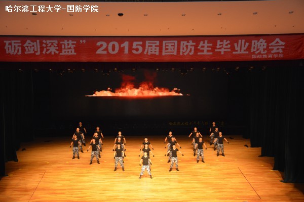 其中以14连国防生为主带来的街舞《BATTLE》动感十足,激情劲爆,女国防生们自编自导自演的舞蹈《女兵谣》更是展示了当代女军人的飒爽英姿,舞蹈《热血铸魂》《旗舞》充满力量,体现出军人的魂魄,将本届晚会的主题展现的淋漓尽致。小品《匆匆那年》、《回家的诱惑》更是语言新奇跌宕,内容诙谐幽默、贴近生活,引得台下观众掌声不断,笑语连连。歌曲《烛光里的妈妈》、《夜空中最亮的星》、《望月》等凭借其感人至深的唱功,带动了台下观众情感上的共鸣。诗朗诵《我的祖先叫炎黄》激情澎湃,将毕业晚会推向高潮,最后,即将踏入部队的11连国防生带来歌曲《离人》,在悠扬的歌声中“砺剑深蓝” 2015届国防生毕业晚会暨第七届海军节文艺汇演圆满落下帷幕。