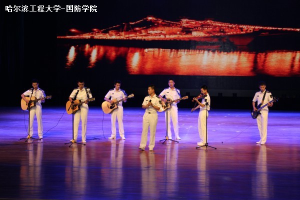6月7日18时30分,由国防教育学院主办的“砺剑深蓝”2015届国防生毕业晚会暨第七届海军节文艺汇演在启航剧场精彩上演。校党委宣传部部长李升平,国防教育学院院长、党委书记李修志,海军驻校选培办主任李汝亭上校,国防教育学院党委副书记兼副院长王晓亮,副院长郑海龙和国防学院师生、学生家长及校内师生学生千余人参加晚会,剧场内座无虚席。