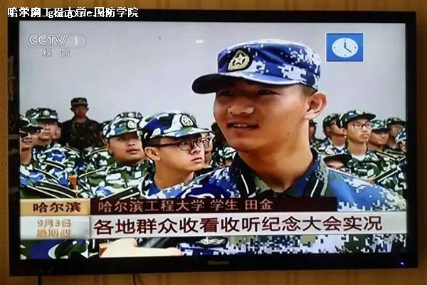(本刊记者 何志芳)9月3日9:30分,军训团组织参训学生和军训团全体干部在21B教学楼收看“纪念中国人民抗日战争暨世界反法西斯战争胜利70周年大会及阅兵式”现场直播。黑龙江省电视台就我校组织观看阅兵式对部分新生和指导员进行了采访。中央电视台综合频道《新闻30分》栏目在“胜利日・纪念抗战胜利70周年各地群众收看收听纪念大会实况”中,播出我校学生收看“大阅兵”的感受。