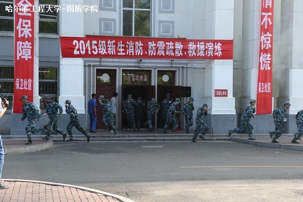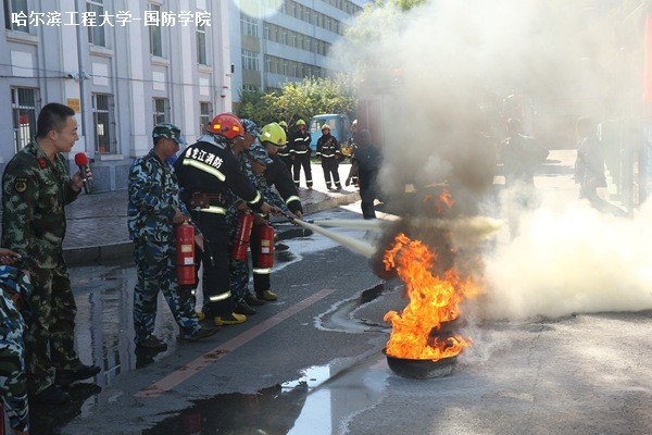 (本刊记者 何志芳)9月5日14时,学校组织全体2015级新生在学生第二公寓进行消防防震疏散、救援演练,军训团团长李修志,政委吕开东,副团长郑海龙,以及哈尔滨市南岗区消防大队领导等出席活动。活动首先由消防大队讲解员就防火自救相关知识进行了介绍,紧接着在演练中南岗区消防大队出动4辆消防车,为同学们现场演示了火灾扑救和人员救援过程。此外,部分新生代表也参加了紧急疏散,火灾自救过程,并亲自演示了灭火器的使用方法。多一点消防知识,多一份安全保障,同学们在该消防演练活动中受益匪浅。