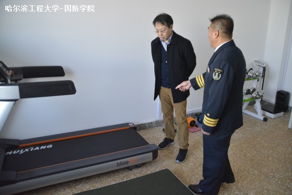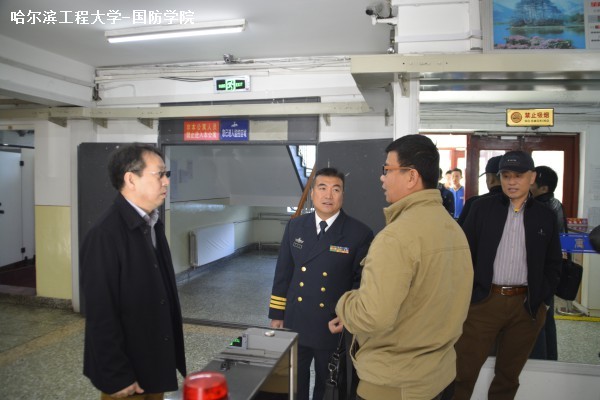 10月20日,国防生“黑鲨公寓”前悬挂满旗,海军装备部驻沈阳地区军事代表局局长陈奇一行来到我校,视察国防生新公寓并指导国防生培养工作。