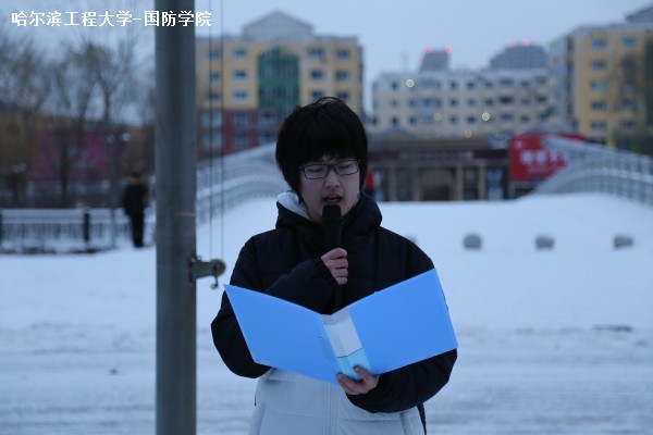 12月1日清晨,哈尔滨工程大学于主楼前举行升旗仪式,本次升旗仪式由国防教育学院与外语系共同承办,外语系部分师生代表和国防教育学院全体国防生参加本次升旗仪式。 6点30分,随着激昂的国歌响起,五星红旗飘扬升起。随后,由外语系学生代表进行国旗下讲话。他为大家介绍12.9运动的起因经过,号召同学们要牢记历史,避免历史的悲剧不再重演,要奋发图强,开拓进取,为祖国现代化建设不懈奋斗。 本次升旗仪式旨在提高学生们的爱国热情,使同学们了解并铭记历史,时刻不忘自己的责任,响应党的号召,不断前进。
