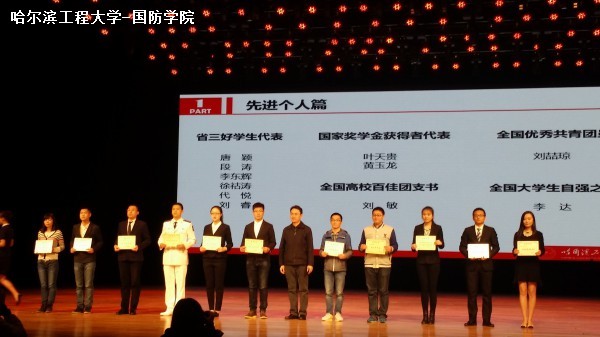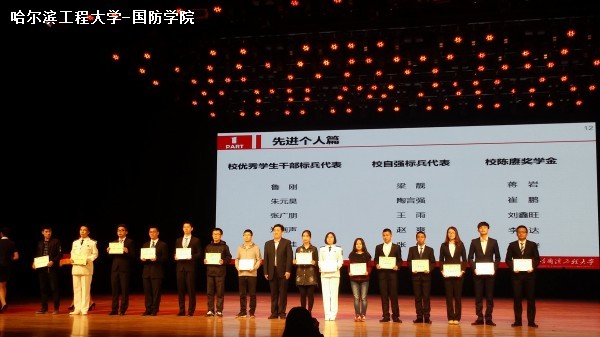 据悉,在此次表彰大会上,全校多个基层团组织、志愿服务集体、学生社团和多名先进个人受到表彰。 八公寓334寝室获得校优秀学生寝室标兵荣誉称号;十三连二排团支部获得五四红旗团支部标兵荣誉称号;蓝色延长线微信团队获得新媒体新锐团队奖。徐祜涛等五名国防生获得省三好学生荣誉称号;十二连四排朱元昊获得校优秀学生干部荣誉称号;十二连二排的赵爽获得校自强标兵称号;张天舒等27名国防生获得校优秀共青团员;孙齐等17名国防生荣获校优秀共青团干部。他们不仅为我院争得了荣誉,也用实际行动诠释了海军后备军官的风采。