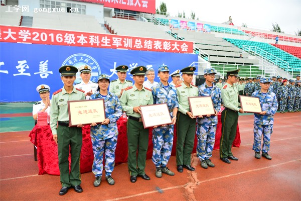 另讯 9日上午,2016级新生军训总结表彰大会在北体育场举行。大会授予一营6连等4个连队“先进连队”称号、宿露等12名指导员“优秀指导员”称号、聂宝峰等26名教官“优秀教官”称号、孙碧�等268名同学“优秀学员”称号,并为他们颁发了荣誉证书。