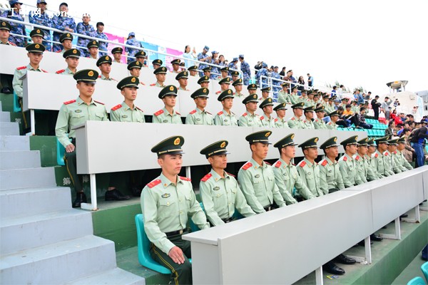 分列式随即开始,在军旗的带领下,女兵、国防生、男兵方队以严整的队形、整齐的步伐依次经过主席台。同学们英姿勃发、气宇轩昂,展现了作风优良、训练有素的军人风采,充分体现了本次军训的丰硕成果。校领导和各位来宾站立,频频举手向他们致意,观众席上也为同学们的精彩表演报以热烈的掌声。