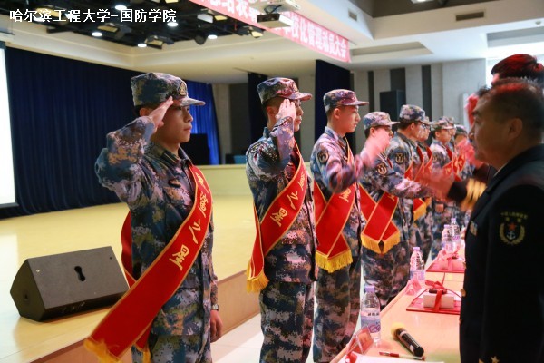 李汝亭总结了全年国防生军政训练情况,对“两看齐一管理”培养模式进行了阐述,并指出,推进“准军校化管理”,是传承“哈军工”红色基因、提振哈工程优势特色、融汇“一海校”蓝色底蕴及大连舰院优良作风的有益探索,是军地共同应对部队建设改革需求的有益实践。装甲兵技术学院狄刚对我校国防生在训练中的优异表现给予了充分肯定,并提出了期望。大连舰院训练部由大德希望国防生充分认清“铁心向党”的政治要求,坚定从军报国信念,做“听党话跟党走”的坚定举旗人;牢固树立国防生战斗力标准,打牢职业素质基础,磨砺“能打仗打胜仗”的军人血性;不断强化后备军官文化建设,合力打造“黑鲨”品牌,培育“有谋略作风硬”的追梦人。