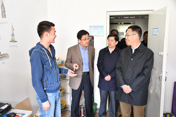 4月29日上午,校长姚郁、副校长高晚欣带领校工会、后勤集团等部门负责人一行来到国防生公寓,慰问了国防生公寓的管理工作人员,并来到学院进行了视察指导。?xml:namespace> 姚郁校长一行参观了国防生体能训练中心、寝室、学生课外活动室、自习室以及公寓文化建设,对国防生寝室的整齐划一、干净整洁给予了充分的肯定。他要求学院认真研究探索书院式公寓建设的内涵,要服务于国防生人才培养、成长成才的需求,多学习借鉴相关高校的做法及经验。