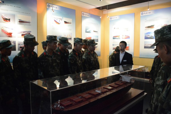 8月27日上午8点,在军训团副团长、国防教育学院副院长郑海龙同志,军训团副参谋长、国防教育学院军事教学中心主任李彦涛同志的带领下,全体承训官兵参观了学校校园、军工纪念馆、船舶展厅以及船舶学院和动力学院的重点实验室。军训团参谋长、武警黑龙江省总队第二支队一大队教导员赵永庆中校率队参加。