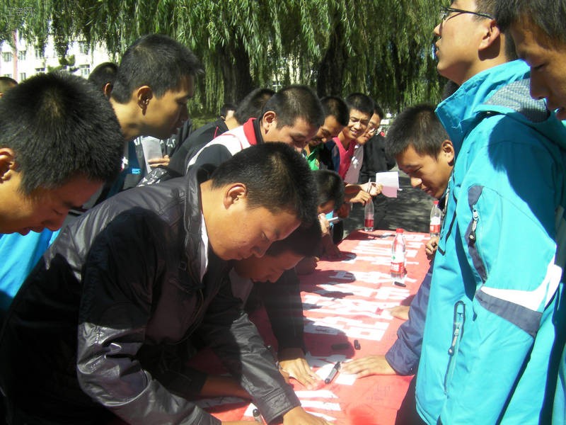 2010年9月18日中午,国防爱好者协会在大美食堂门前举办以“勿忘国耻,牢记历史,奋发图强,振兴中华”为主题的纪念九一八签名活动。活动期间,由国防爱好者协会会员向过往行人朗读九一八事变发生的历史背景和始末,旨在使大家牢记历史,勿忘国耻。路过的各位同学和老师均积极参加签名活动,在条幅上留下自己的名字。