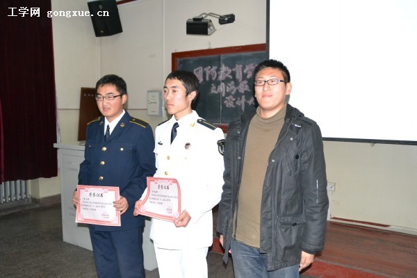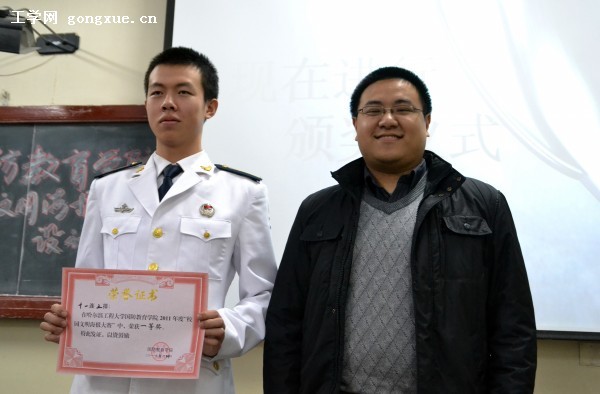 国防教育学院辅导员刘东平为二等奖获得者颁奖